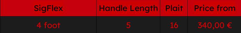 This series is a mix of Snake/Signal and Bullwhip. Unlike others, the short handle here is not made of steel or another rigid material but of a short, thin fiberglass rod. This keeps the whip, which is rather shorter, relatively light and ensures significantly more agile and easier handling. The whole thing is rounded off by a Dyneema loop at the end of the whip, which makes changing the case or converting to a signal whip very quick and easy. Built with multiple bolsters and a bellie, supported by a 16 plait overlay. My absolute favorite when it comes to short whips.